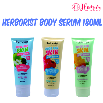HERBORIST BODY SERUM 180ML Herborist Juice For Skin Body Serum – 180ml DESKRIPSI PRODUCT : Body serum yang memberikan efek instant bright dalam WHITEBOOSTER FORMULA yang dapat membuat kulit glowing dan juicy dalam 21 hari. KANDUNGAN & MANFAAT : * INSTANT BRIGHT = memberikan efek kulit cerah seketika dalam sekali pakai * WHITE BOOSTER FORMULA = dengan kandungan natural ingredient + active ingredient yang mencerahkan dalam 21 hari * 5X VITAMIN E = yang ekstra memberikan nutrisi pada kulit Tersedia dalam 3 Variant : 1. Raspberry & Tomato 2. Orange & Carrot 3. Apple & Broccoli tanyakan stok sebelum membeli sertakan pilihan kedua jika pilihan pertama kosong barang akan dikirim pilihan kedua, jika tidak disertakan barang akan dikirim random. membeli = setuju